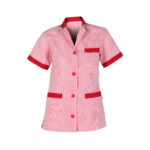 La bata de mujer corta VICHY con manga corta y combinada se presenta en un diseño semi ajustado que equilibra estilo y funcionalidad. Las pinzas en la parte delantera y trasera realzan la elegancia de esta bata.