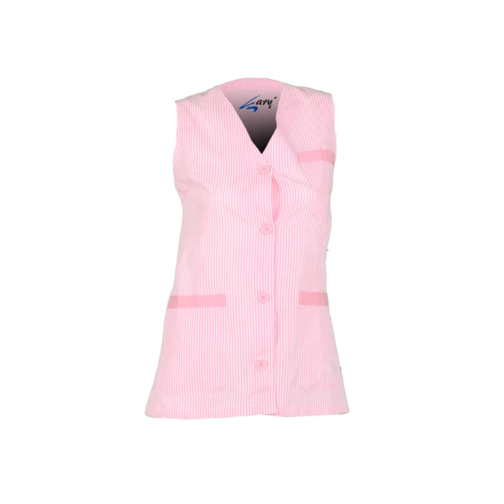 El diseño sin mangas y el ajuste a medida de la bata aseguran que puedas desempeñar tus tareas diarias sin restricciones.