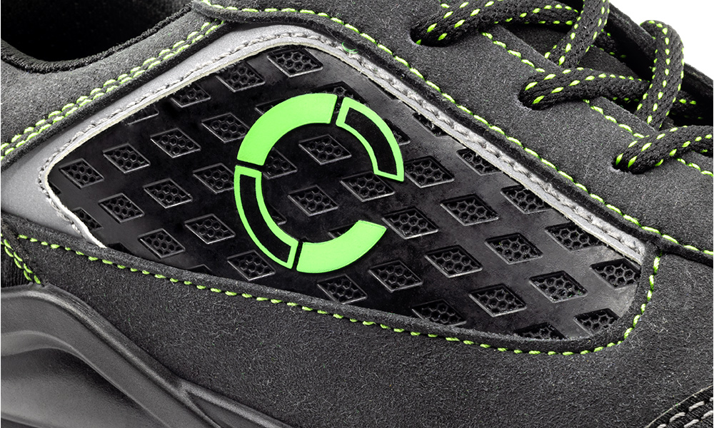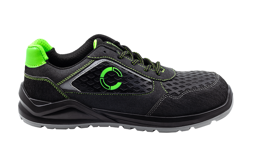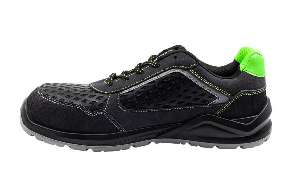 Zapato no metálico, ESD, realizado microfibra con acabado nubuck, reforzado en la puntera y trasera con goma, forro textil con diseño 3D y acolchado para evitar rozaduras, suela en poliuretano de doble densidad, plantilla confort de poliuretano, puntera de fibra de 2ª generación y plantilla antiperforación de que Kevlar.