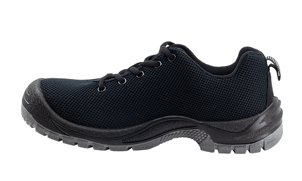 Zapatos corte en KNIT antiabrasión. Máxima transpirabilidad y comodidad, transpirable con forro textil acolchado para evitar rozaduras, suela en poliuretano de doble densidad, puntera de acero y plantilla antiperforación de acero.