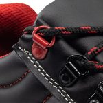 Modelos fabricados en piel de búfalo con grabado barton y tratamiento hidrófugo, forro textil acolchado para evitar rozaduras, suela en poliuretano de doble densidad, puntera de acero y plantilla antiperforación de acero.