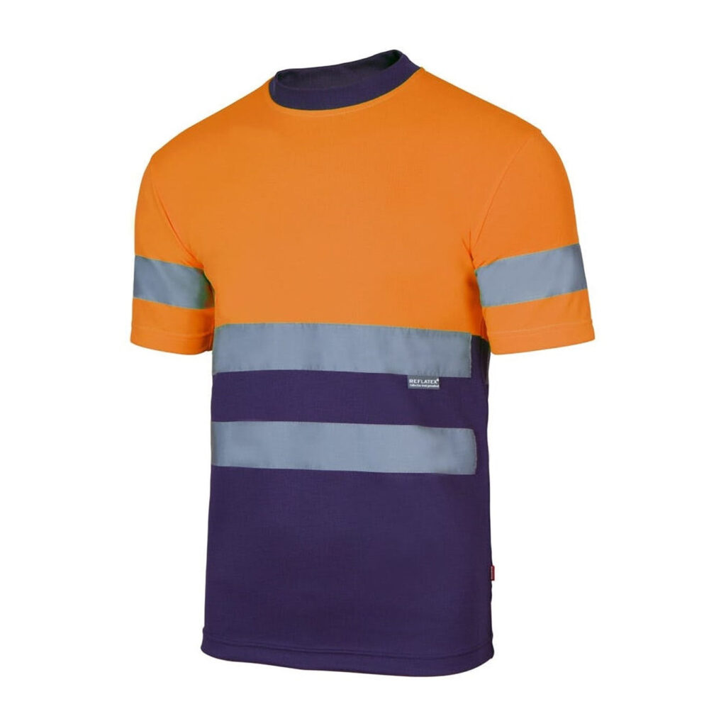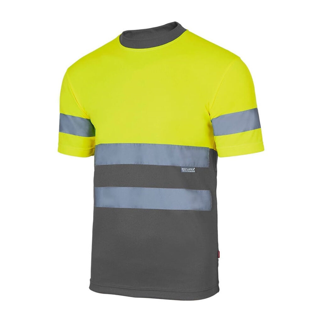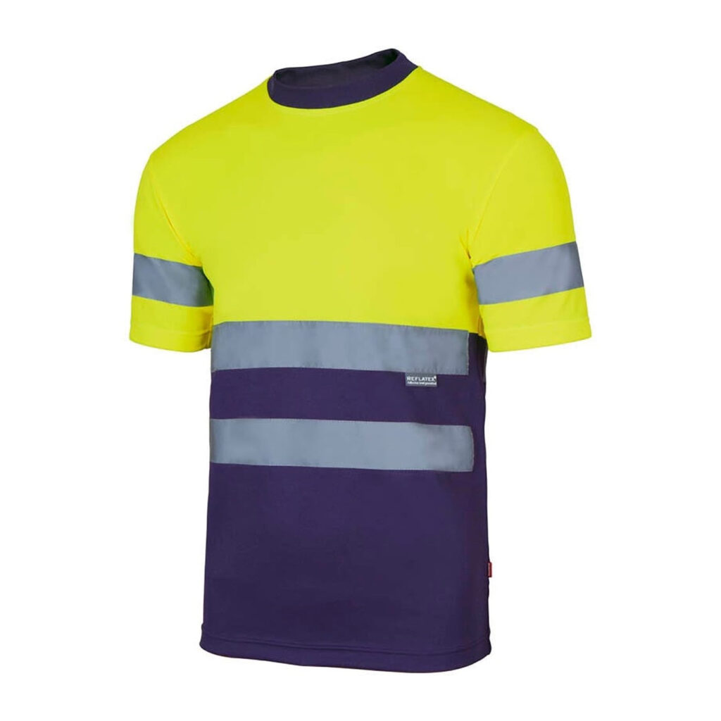 Cuello redondo de canalé, en color contraste Cintas reflectantes en torso y mangas Cinta de tejido base que cubre la costura del cuello Transpirable VELILLA