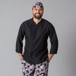 La chaqueta de cocina de hombre VIDAL presenta un diseño elegante con manga larga, cuello mao, y cierre cruzado mediante botones de presión ocultos. El cuello mao le brinda un toque distintivo de estilo mientras que los puños vueltos añaden comodidad y un ajuste seguro.