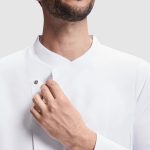 · Cuello tirilla y manga tipo sastre con dobladillo en puños.