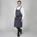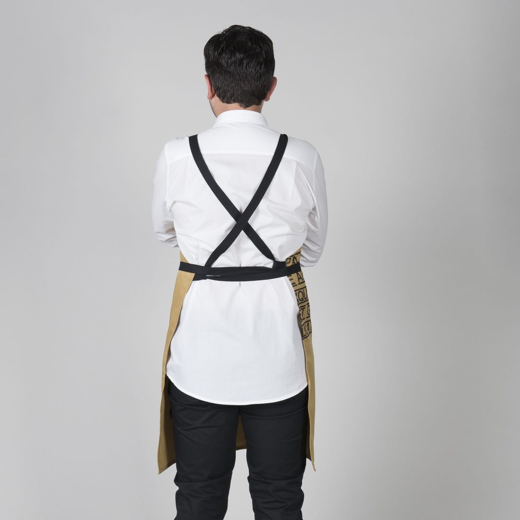 Equipado con un bolsillo en la parte delantera, este delantal no solo ofrece practicidad sino también un espacio conveniente para llevar consigo pequeños utensilios esenciales. El sistema de cierre mediante tiras cruzadas desde el peto hacia los costados asegura un ajuste cómodo y personalizado.