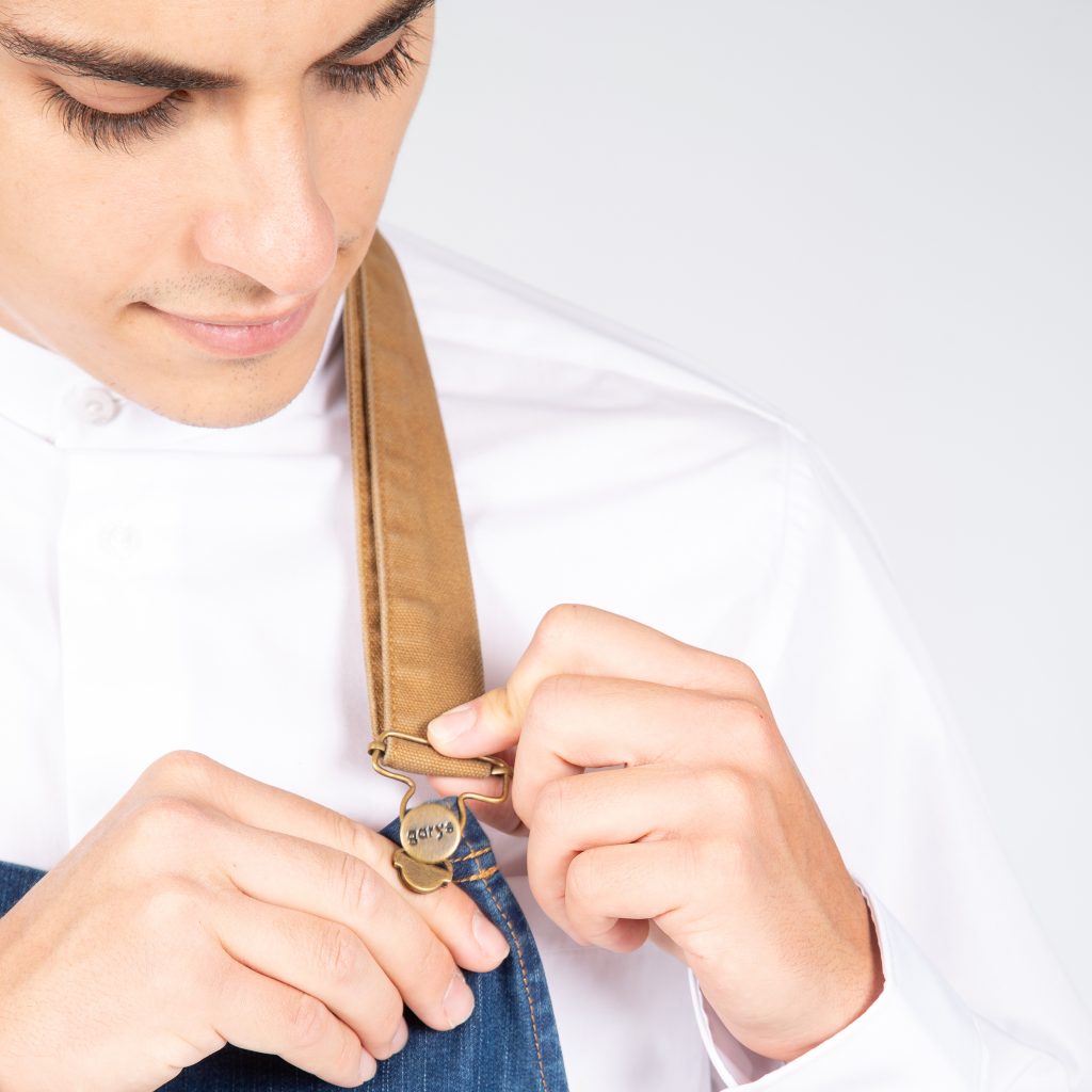 Valoramos su comodidad, por lo que hemos incorporado un tirante del cuello fijado mediante hebilla metálica regulable y botón, junto con tiras laterales para anudar. Esto le permite ajustar el delantal a su medida, garantizando un ajuste cómodo y seguro que se adapta a sus necesidades.