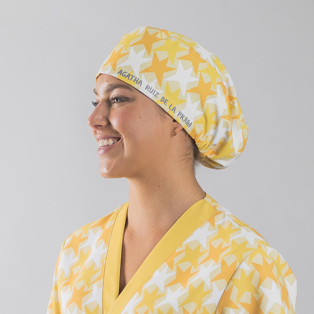 Este gorro está impreso con motivos originales y divertidos de Agatha Ruiz de la Prada, lo que te permite destacar en tu campo sin dejar de mantener una imagen profesional.