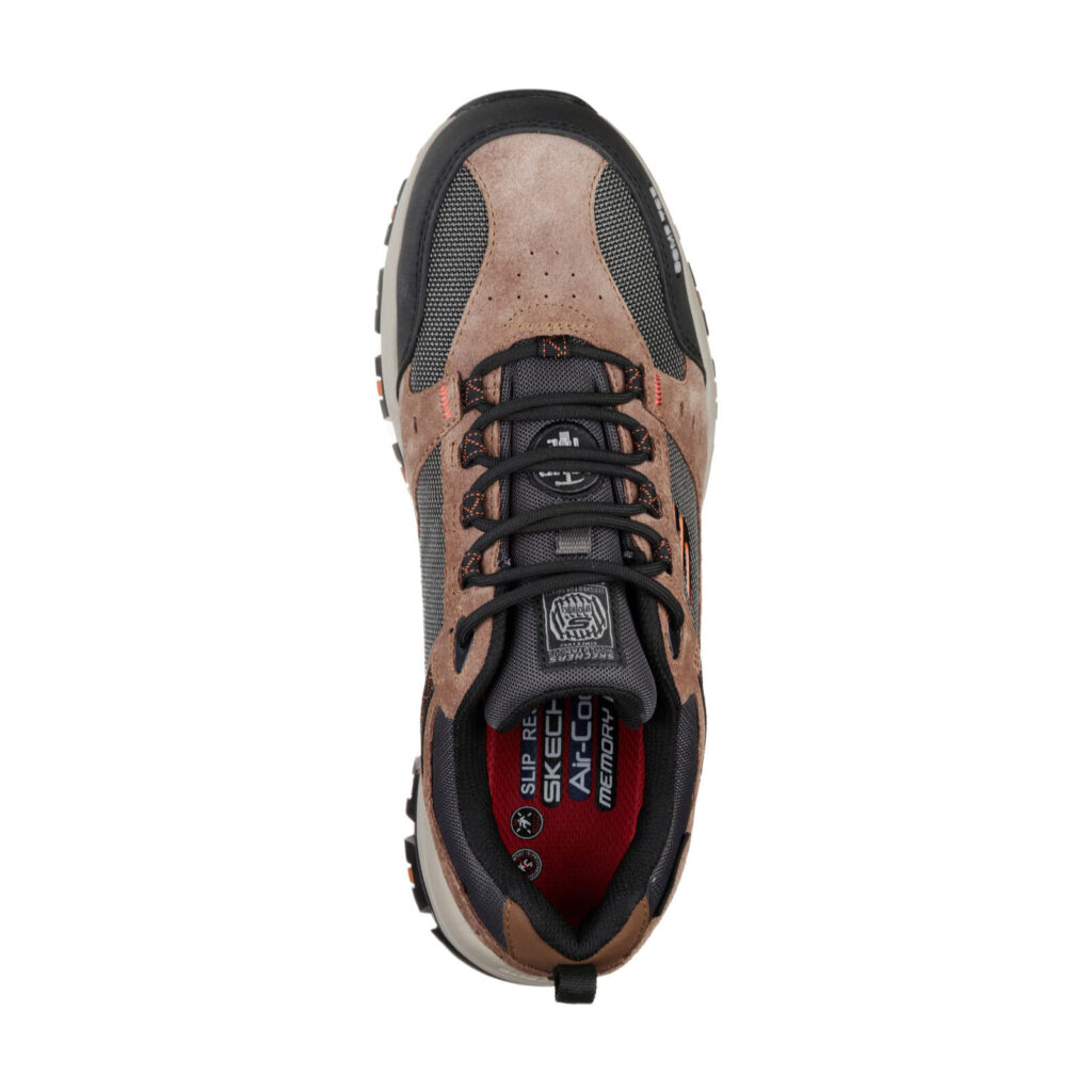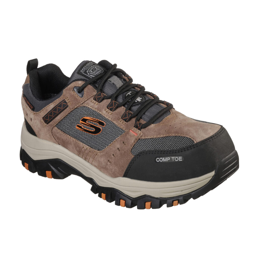 Equipados con una puntera de seguridad de compuesto resistente al agua, estos zapatos garantizan una protección superior contra impactos y compresión, cumpliendo con las estrictas normas de seguridad EN ISO 20345-2011. Además, la plantilla acolchada con tecnología Skechers Air-Cooled Memory Foam® ofrece un confort excepcional, adaptándose a la forma única de tu pie y manteniéndote fresco durante todo el día.