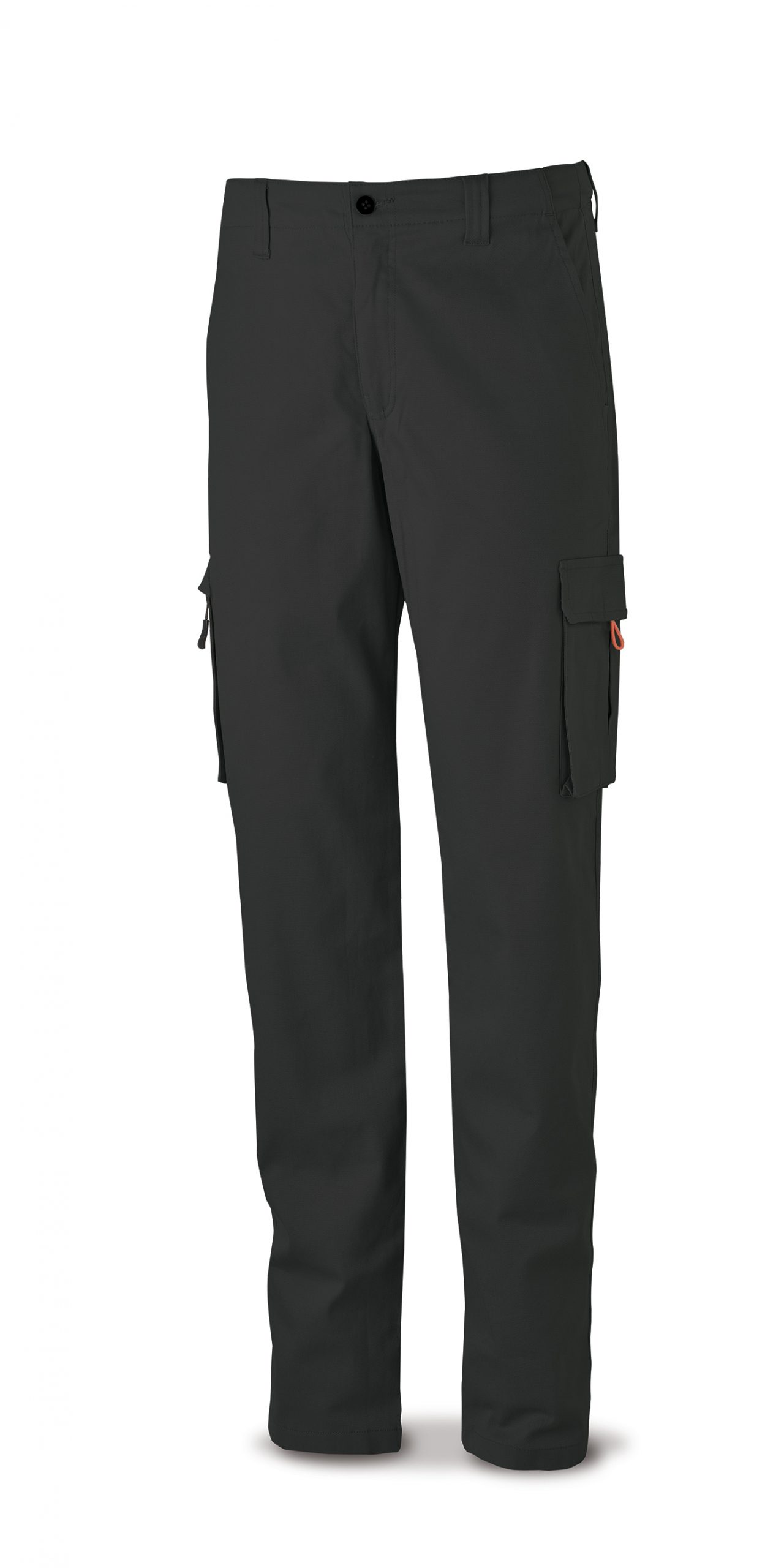 Pantalón Casual fabricado con tejido Stretch de 260 gr/m2. Seis bolsillos: dos en cadera tipo francés, dos en perneras tipo cargo con pliegue al interior y dos traseros. Ajuste a cadera sin elástico adicional con 5 trabillas extra anchas.